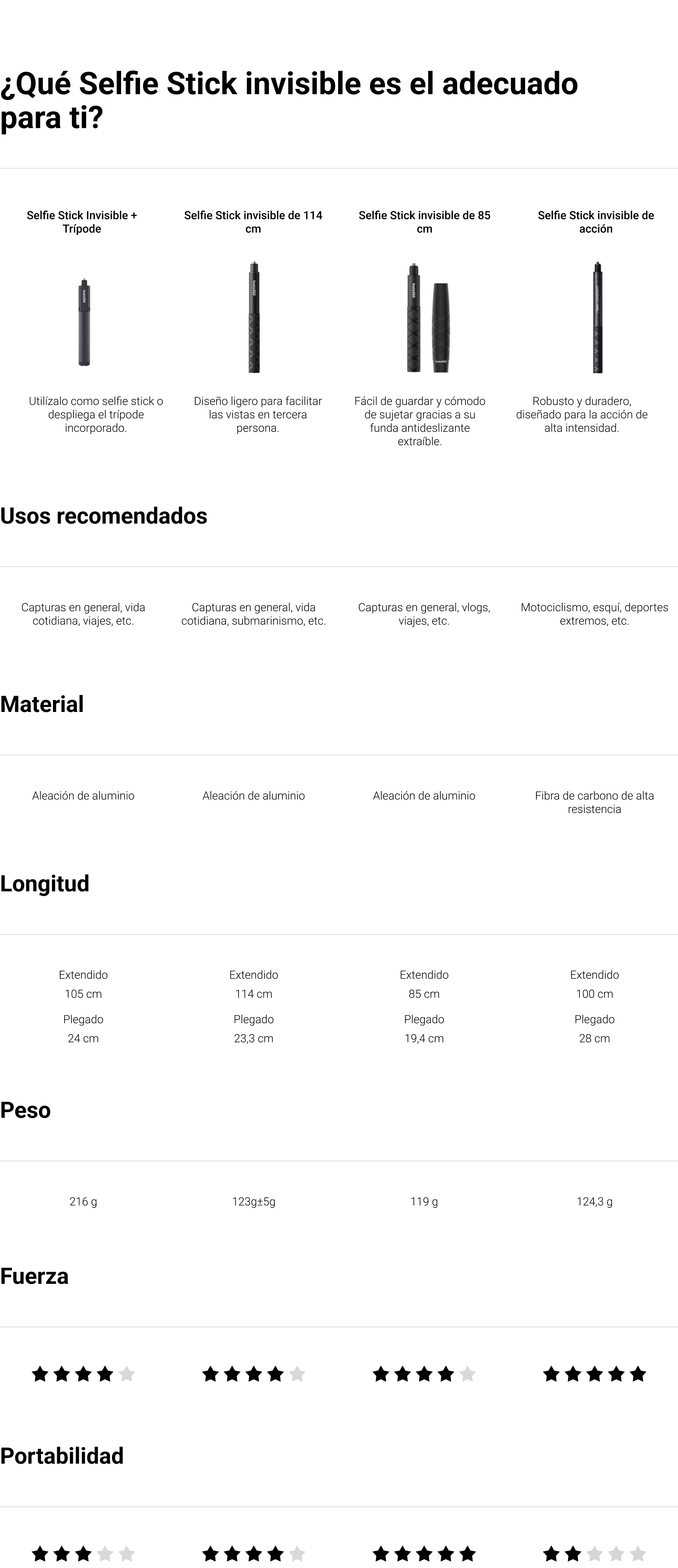 Selfie Stick Invisible de 114 cm Blanco